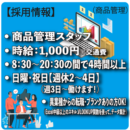 | 職種 | バックオフィス業務(商品管理) |